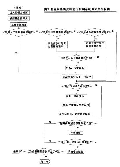 營(yíng)養(yǎng)液施肥控制方式也分為人工干預(yù)、定時(shí)定量、條件控制 種。當(dāng)進(jìn)行營(yíng)養(yǎng)液施肥時(shí),計(jì)算機(jī)系統(tǒng)根據(jù)選定的配方和已設(shè)定好的營(yíng)養(yǎng)液pH、EC值,利用文丘里注肥器進(jìn)行水肥混合,同時(shí)在線實(shí)時(shí)監(jiān)測(cè)混合營(yíng)養(yǎng)液的pH、EC值,根據(jù)pH、EC設(shè)定值與檢測(cè)值之間的偏差來(lái)調(diào)整混肥閥的注肥頻率,在短時(shí)間內(nèi)使?fàn)I養(yǎng)液的檢測(cè)值和設(shè)定值之差達(dá)到允許的范圍內(nèi)。當(dāng)一組田間閥門(mén)施肥結(jié)束時(shí).先打開(kāi)下一組閥門(mén),再關(guān)閉正在運(yùn)行的閥門(mén)。當(dāng)所有需要施肥的田間閥施肥完畢,先關(guān)閉施肥泵和水泵,再關(guān)閉正在打開(kāi)的所有閥門(mén),結(jié)束施肥控制。