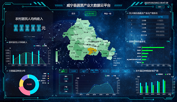 蔬菜產業大數據平臺的建設,不僅豐富了消費者的“菜籃子”,還鼓起了當地群眾的“錢袋子”,成為助力威寧在鄉村振興上開新局的“綠色引擎”。2021年,威寧蔬菜種植面積穩定在40萬畝以上,其中以縣城周圍9個鄉鎮打造高標準的7萬畝核心基地,品種以‘三白’蔬菜為主,還有西藍花、辣椒、香蔥、菜心等40余個品種,年產量在250萬噸左右,年產值40億元左右。”威寧自治縣蔬菜產業發展中心主任謝洪說。