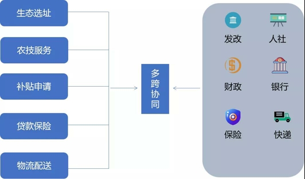 整合生態(tài)選址、農(nóng)技服務(wù)、補(bǔ)貼申請(qǐng)、網(wǎng)上信貸等多部門多業(yè)務(wù),將農(nóng)業(yè)條線單一的生產(chǎn)服務(wù)延伸到產(chǎn)前、產(chǎn)中、產(chǎn)后的全鏈條服務(wù),完善“一站式”服務(wù)機(jī)制。
