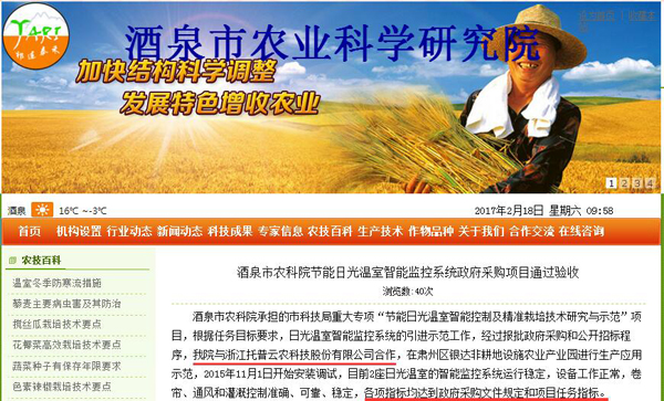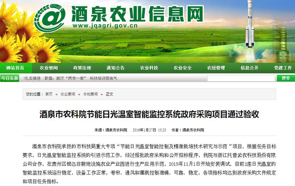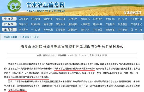 酒泉市農(nóng)科院節(jié)能日光溫室智能監(jiān)控系統(tǒng)政府采購(gòu)項(xiàng)目通過驗(yàn)收