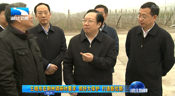 2016年11月,湖北省委副書記、代省長王曉東在荊州市市委書記李新華、市長楊智等領導陪同下蒞臨金秋農業智能化葡萄示范基地調研現代農業發展情況。饒有興趣的參觀了"智能化中心"水肥一體化設施,了解托普云農水肥一體化的精準生產過程。