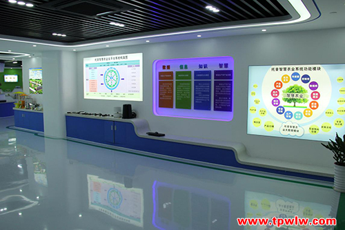 以往客戶了解自己感興趣的產品或者方案只能通過宣傳彩頁或者網站等渠道,為了給用戶更直觀的體驗,加快用戶對產品的了解。2015年12月,托普云農在公司總部著手打造立體化、專業化的現代農業展廳。2016年3月展廳落成,并對前來考察的用戶開放。