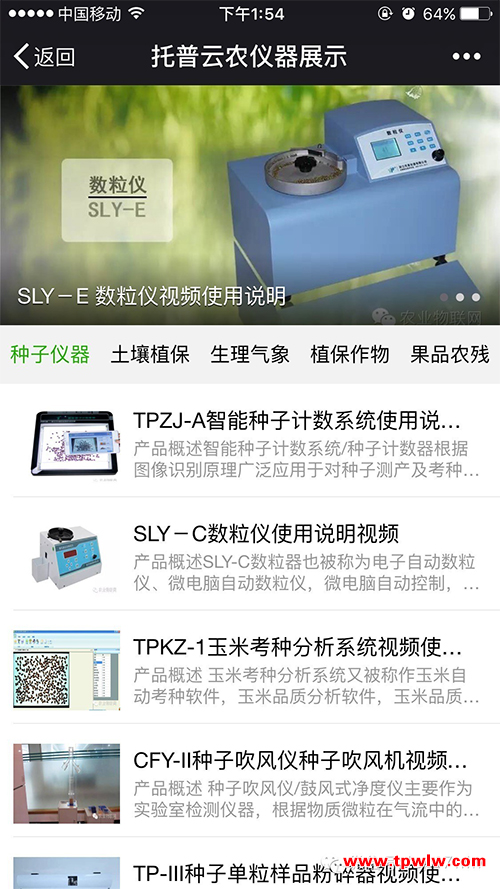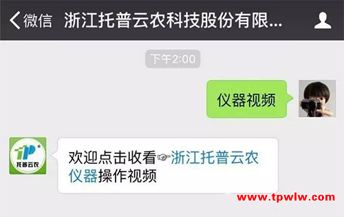 現在只需關注“浙江托普云農科技股份有限公司”的微信公眾號,回復對應的關鍵字,即可查看儀器操作視頻,比如需要查看智能種子技術系統的操作視頻,只需要回復“種子計數系統”或者儀器型號即可了解如何使用儀器,查看儀器的相關參數和功能。