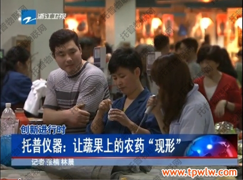 2013年5月22日晚,浙江新聞聯播報道了杭州市萬壽亭農貿市場一位用農藥殘留速測儀檢測自己所賣蔬菜的攤主以及農藥殘留速測儀的研發及生產廠家——浙江托普儀器有限公司。