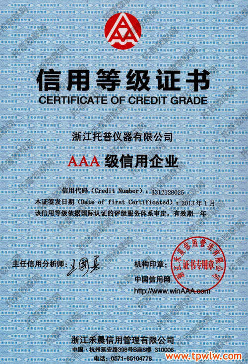 到目前為止,未發現本公司在工商、稅務、法律訴訟等部門有任何與之相關的不良記錄存在,而且在省財政廳采購監督管理處也未發現本公司有任何相關不良處罰記錄,最終確定本公司2013年信用級別為AAA級級信用企業。