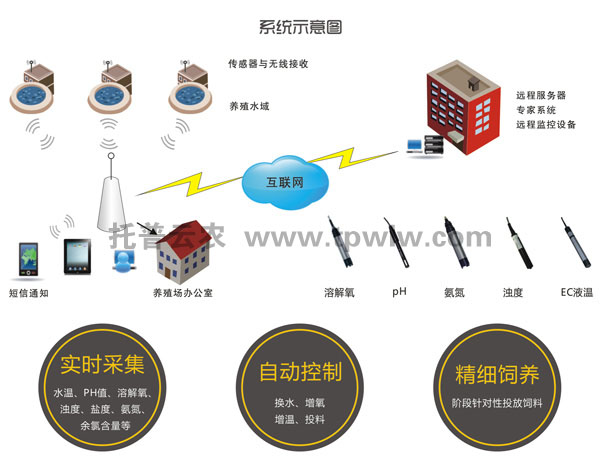水產養殖監控系統是一套物聯網為核心,貫穿整個養殖過程,科技化、智能化、便捷性、低成本、高收益的水產養殖系統,它的應用標志著經驗養殖的方式正在逐漸成為歷史,科技養殖的時代開始到來。托普云農水產養殖監控系統利用各種水質傳感器測驗PH、溶解氧、溫度等重要的水質數據,并及時作出調整,使水質達到最佳狀態。