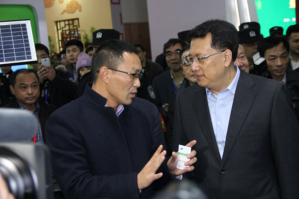 本屆展會“互聯(lián)網(wǎng)+”成托普云農展區(qū)亮點,吸引了省領導的目光及浙江衛(wèi)視的關注。省委副書記袁家軍、省人大常委會副主任程渭山、副省長孫景淼等領導在工作人員的陪同下參觀了托普云農展區(qū)。托普云農董事長陳渝陽向袁家軍副書記一行介紹了公司在物聯(lián)網(wǎng)方面取得的階段性進展和研發(fā)成果,結合現(xiàn)場展示的植保信息化系統(tǒng),向袁家軍副書記一行演示了智能農業(yè)儀器是如何“+”互聯(lián)網(wǎng)技術在全天候無人值守的情況下實現(xiàn)“四情”監(jiān)測的。直接展現(xiàn)了互聯(lián)網(wǎng)產業(yè)與農業(yè)產業(yè)融合發(fā)展促進傳統(tǒng)農業(yè)轉型升級的發(fā)展現(xiàn)狀。