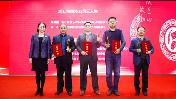 圖:托普云農(nóng)董事長(zhǎng)陳渝陽(yáng)獲得2017 智慧農(nóng)業(yè)風(fēng)云人物證書(shū)位列其中
