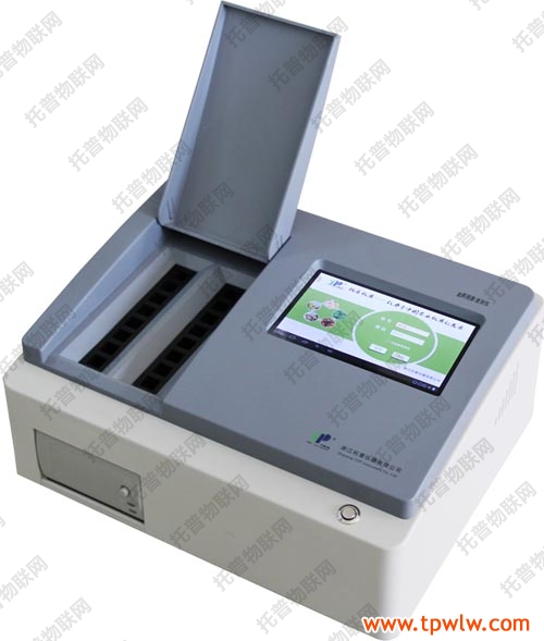 該儀器檢測方法采用國家和農業部標準,測試結果定性定量均可,定性顯示結果為抑制率,定量顯示結果為mg/kg。用于有機磷、氨基甲酸脂類等農藥殘留物的檢測,抑制率越高,殘留量越大。適用于工商、衛生、質監、農業、貿易等部門,以及集貿市場、超市、大型食堂、農業生產基地等。