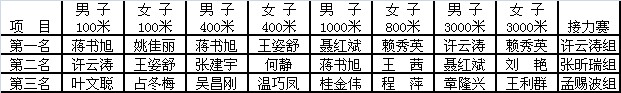 此次田徑運動會分為男子100米、女子100米;男子400米,女子400米;男子1000米,女子800米;男子3000米,女子3000米;男女混合4*200米接力賽。賽制為,初賽取(每組取前兩名和成績最好的兩名共六名人員進入決賽)前三名進入決賽,決賽取前三名為獲獎選手。上午9:10,運動會在女子400米初賽中拉開帷幕。