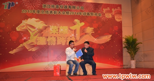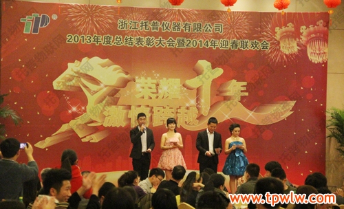 - “榮耀十年、激情跨越”之托普儀器2013年年終晚會發(fā)表日期:2014-01-27 來源:托普云農(nóng) 瀏覽次數(shù):3853次飛雪送蛇歸,駿馬迎春來。2014年1月24日六點(diǎn)整,在一片歡樂祥和的氣氛里,“榮耀十年、激情跨越”之托普儀器2013年年終晚會緩緩拉開序幕。托普儀器260余人的大家庭齊聚一堂,慶祝托普十年華誕,慶祝一年的工作成果,慶祝除舊迎新。晚會伊始,托普儀器陳渝陽總經(jīng)理上臺為本次晚會致開幕詞,為即將到來的馬年向所有托普家人致以新春的問候。