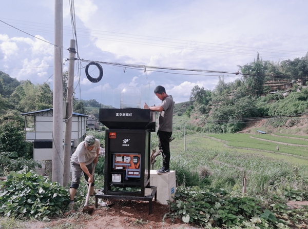 總而言之,目前我國糧食生產形勢依舊嚴峻,重大病蟲害的防控不容懈怠。 6月30日,托普云農售后服務部的工作人員在云南省江城縣完成了最后一臺高空測報燈的安裝,代表著托普云農順利完成了本次農業農村部下達的“三區三帶”布防任務。 高空測報燈是一款利用燈誘吸引遷飛性蟲害的測報燈,針對草地貪夜蛾的生物習性做了技術匹配與功能優化,可在防控工作當中輔助植保人員完成草貪測報工作,為全國布防一盤棋做好基層數據采集工作。