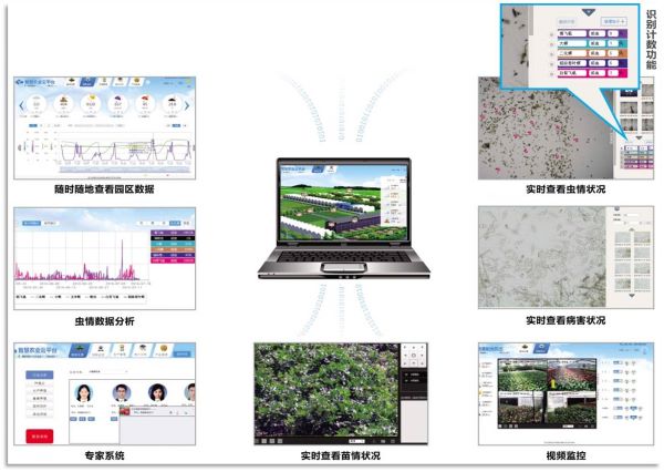 病蟲害監測預警系統由小型氣象站、蟲情測報燈、苗情/災情攝像機、專家系統、信息管理平臺組成。通過web端和移動端,植保管理者足不出戶就可以進行遠程管理,實時了解蟲情數據、氣象數據等參數信息,實現“機器換人”。通過將搜集數據上傳至云端,系統會自動進行便捷高效地數據分析,提高分析結果的精確性。一旦系統監測到重大病蟲災害,將會自動預警,方便植保部門及時開展防治工作。病蟲害監測預警系統的應用不僅提高了植保部門的病蟲害測報工作效率,還大幅提升了病蟲害預警能力,對于保障糧食生產安全、維護環境生態平衡等方面都起到了積極作用。