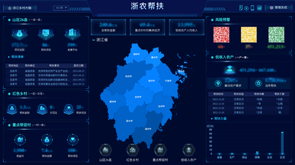 “浙農幫扶”應用以“1+4+N”為核心架構(1個浙農幫扶應用,山區26縣、紅色鄉村、重點幫促村、低收入農戶4大幫扶場景,N個應用子場景) ,率先構建全國低收入農戶風險自動識別機制和全流程處置模型,通過風險識別、干部幫扶、風險解除、監督評價,實現全流程監管、全方位監測、全鏈條預警;構建“輸血+造血”扶智長效機制,開拓六大幫扶舉措,實現多維幫扶;率先全國構建“一縣一團、一村一組、一戶一策”新型幫共體,實現一體幫扶;開發綜合分析功能,實現幫扶成效一屏感知、智能晾曬。目前,浙農幫扶應用已注冊42.5萬人,風險及時處理率100%,農民滿意度100%。
