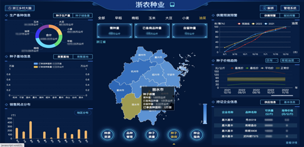 “浙農種業”應用立足浙江省現代種業發展實際,運用數字化改革契機,緊抓支撐種業管理和種業服務兩條主線,構建種質資源、品種管理、種子質量、種子保供、種業服務五大場景。根據種子質量、生產經營許可、品種侵權、信息報送等判斷要素為種子企業賦碼,為政策扶持、行政執法等提供支持;目前,“浙農種業”已建立2000多個品種的產量、品質、抗性、栽培要點等數據信息系統,農戶根據需求一鍵獲得優良品種推薦;歸集3000多家種子銷售門店的數據信息,一張圖快速查找供種門店。