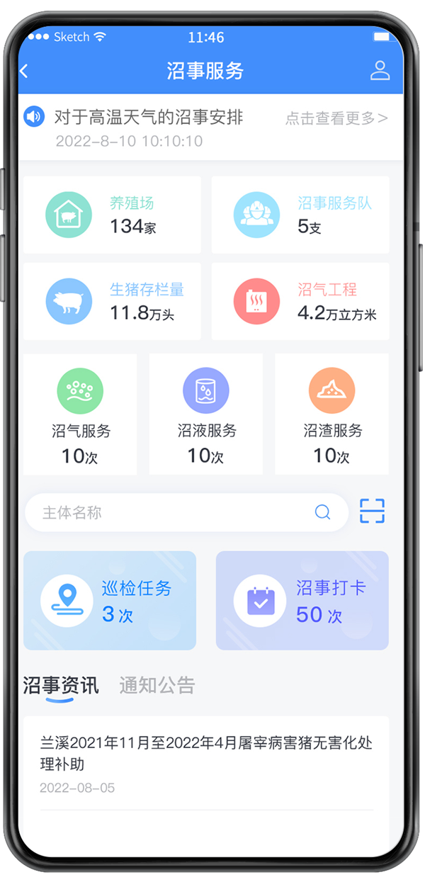 蘭溪“三沼一件事”應用通過數字化智能管控“三沼”事務,實現“農村三沼”服務數字化、便捷化,全市養殖場“三沼”循環利用的精準監管,助力農業生態循環發展。