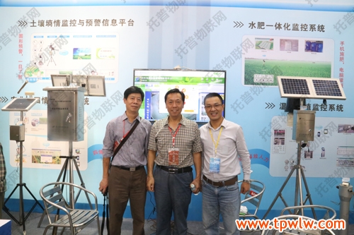 展會期間,農業部種植業管理司曾衍德司長、農業部全國農技推廣中心陳生斗主任、謝建華副主任、北京市土肥站廖洪副站長、甘肅省土肥站崔增團站長、廣西區土肥站賓士友站長都陸續到托普儀器展位視察,公司陳渝陽總經理、陳曦經理為一眾領導詳細介紹了物聯網系統及各種儀器設備。謝建華副主任在視察期間與陳渝陽總經理熱切的聊起了“托普土壤墑情監測與預警信息系統”,他表示對墑情、旱情的有效把握是提高災情防治、提高種植產量、高效節水施肥的重要保證。