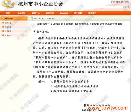 根據(jù)《杭州市中小企業(yè)協(xié)會關(guān)于開展杭州市優(yōu)秀中小企業(yè)家及優(yōu)秀中小企業(yè)評選的通知》(杭中小企協(xié)〔2014〕11號)精神,經(jīng)企業(yè)自薦,各區(qū)、縣(市)中小企業(yè)主管部門審核推薦,評選委員會評審,杭州市中小企業(yè)協(xié)會網(wǎng)站、公眾微信公示,決定授予范淵等16名企業(yè)家“杭州市優(yōu)秀中小企業(yè)家”、浙江藍海星鹽制品有限公司等25家單位“杭州市最具發(fā)展?jié)摿χ行∑髽I(yè)”、杭州中為光電技術(shù)股份有限公司等30家單位“杭州市最具創(chuàng)新中小企業(yè)”榮譽稱號并予以通報表彰。
