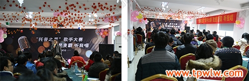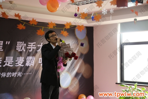 第三輪決賽,選手之間的角逐已經進入白熱化,臺下的“親友團”也使出渾身解數為選手加油,熱情擁抱、鮮花、歡呼,上臺為選手伴舞,比賽已經不僅僅局限于選手之間了。在決賽期間,市場部宋煒燁的《愛上一個不回家的人》,深情款款,用一個已婚人的體悟,詮釋了這首傷心情歌,評委打出空前高分,大眾評審團也紛紛舉起了投票牌。銷售部張銀玉,托普儀器唱跳俱佳的歌后加舞后,公司大型活動必不可少的一抹亮麗身影,決賽上的一曲《我是不是你最疼愛的人》引爆全場,穩健的臺風更是參賽選手的典范。銷售部另一位同事周藍艦此次帶來的是《獨家記憶》,準確的情感表達,使“珍惜”二字深入人心。他在初賽時演唱的《無所謂》,十分形象的模仿了原唱楊坤的聲音,使人印象深刻。最終,宋煒燁、張銀玉、周藍艦這三位選手殺出重圍,分別奪得了大賽的冠、亞、季軍。