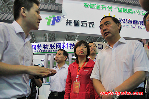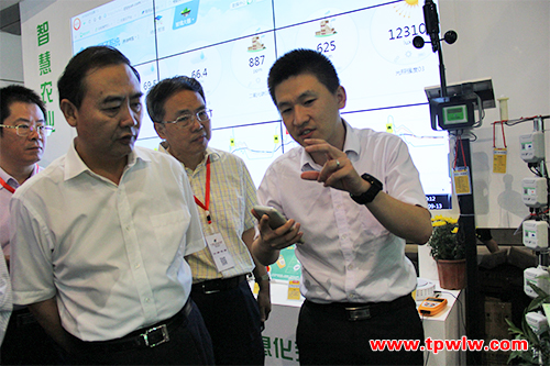 會議期間,安徽省農業委員會孫正東主任蒞臨托普云農農業物聯網展區,并細致觀摩了托普云農所展出的大田“四情”監控系統、設施農業監控系統、土壤墑情監控系統等多種農業物聯網綜合服務平臺,以及與之相關的多種儀器和智能硬件設備。在參觀過程之中,孫正東主任詳細詢問了大田“四情”監控系統、遠程傳輸智能蟲情測報燈、植物本體傳感器、固定式無線農業氣象綜合監測站等系統設備。陳曦經理為其一一進行介紹。
