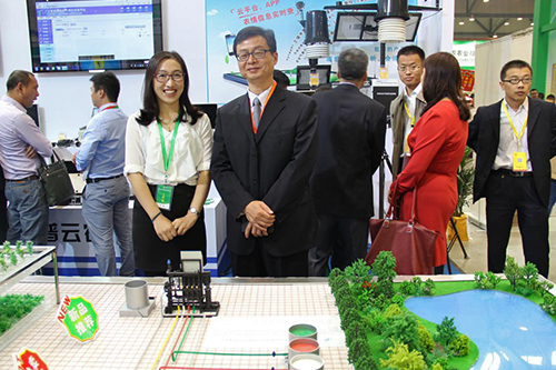 雙交會期間,全國農業技術推廣服務中心陳生斗主任、謝建華副主任一行蒞臨托普云農展區,觀摩了公司展出的水肥一體化智能監控系統和土壤墑情監控預警平臺與設備,并且與托普云農營銷總監陳麗婷親切交流。
