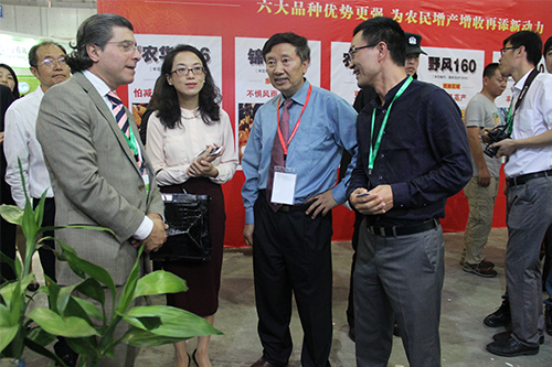 農(nóng)業(yè)部種子局局長張延秋、副局長馬淑萍一行還帶領(lǐng)前來參加中國-阿根廷種業(yè)交流峰會的阿根廷代表團(tuán)參觀了托普云農(nóng)展區(qū)。阿根廷國家種子研究所董事會主席拉威諾勒 萊英姆多農(nóng)業(yè)工程師仔細(xì)觀摩了公司所展出的種子檢驗(yàn)儀器和系統(tǒng),并與陳渝陽總經(jīng)理進(jìn)行交流。