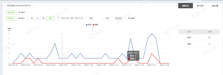 3.?智能識別、自動計數:內置2000萬像素高清工業相機,利用先進的圖像識別算法,能夠對蚜蟲進行精準識別,自動計數。