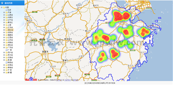 平臺將災(zāi)情按嚴(yán)重程度分為不同顏色,并在省級行政圖中以點(diǎn)的形式表示,只要一打開平臺的行政區(qū)域圖,即可直觀顯示省內(nèi)各區(qū)域的墑情情況如何。