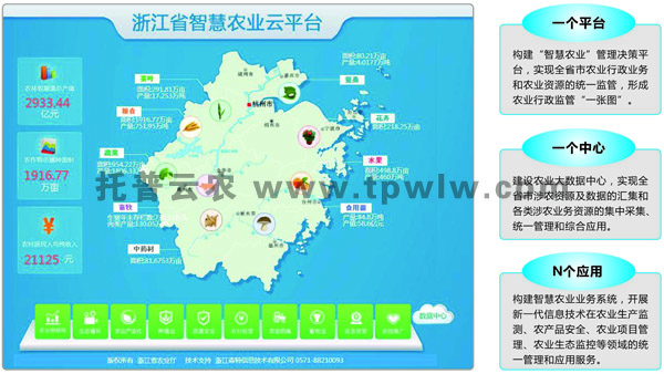 浙江省智慧農(nóng)業(yè)云平臺(tái)簡稱智慧農(nóng)業(yè)云平臺(tái),旨在通過農(nóng)業(yè)物聯(lián)網(wǎng)技術(shù)、大數(shù)據(jù)、3S等信息化技術(shù)有效整合省市縣各級(jí)涉農(nóng)資源,以頂層設(shè)計(jì)方式建成“一個(gè)平臺(tái)一個(gè)中心N個(gè)應(yīng)用”,匯聚農(nóng)業(yè)產(chǎn)業(yè)、農(nóng)業(yè)“兩區(qū)”、物聯(lián)網(wǎng)、植保、農(nóng)機(jī)、畜牧、農(nóng)資、農(nóng)經(jīng)、科教等各級(jí)農(nóng)業(yè)業(yè)務(wù)應(yīng)用及數(shù)據(jù),形成“大農(nóng)業(yè)”數(shù)據(jù)中心,構(gòu)建互聯(lián)共享的“互聯(lián)網(wǎng)+農(nóng)業(yè)”信息服務(wù)體系,以最終實(shí)現(xiàn)科學(xué)指導(dǎo)農(nóng)業(yè)生產(chǎn)經(jīng)營管理、政府決策監(jiān)管和社會(huì)公眾服務(wù)。