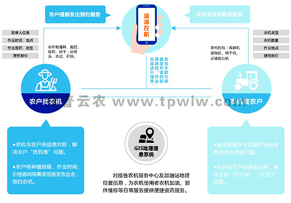?????? 針對現今農機與農戶間信息不對稱,許多農機僅局限于本合作社或本區(qū)域作業(yè),農戶無法及時找到農機手進行耕收等問題,托普云農開發(fā)了“滴滴農機”APP,通過預約服務方式,農戶將作業(yè)內容等需求信息發(fā)布后,附近農機手即可直接接單,從而有效解決農機閑置問題,提升耕種收割效率。同時借助“滴滴農機”手機APP可拓展更多農業(yè)服務內容,包括農資購買、農產品銷售、金融等服務。