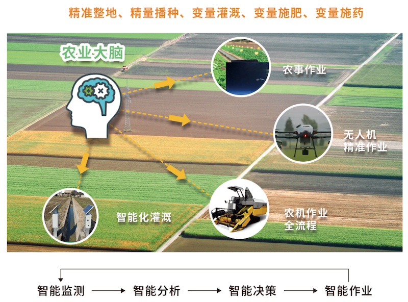以北斗衛(wèi)星導(dǎo)航技術(shù)為基礎(chǔ),結(jié)合智能農(nóng)事建議,聯(lián)動(dòng)智能裝備,實(shí)現(xiàn)大田生產(chǎn)全程作業(yè)機(jī)械化、管理可視化,農(nóng)場無人化。